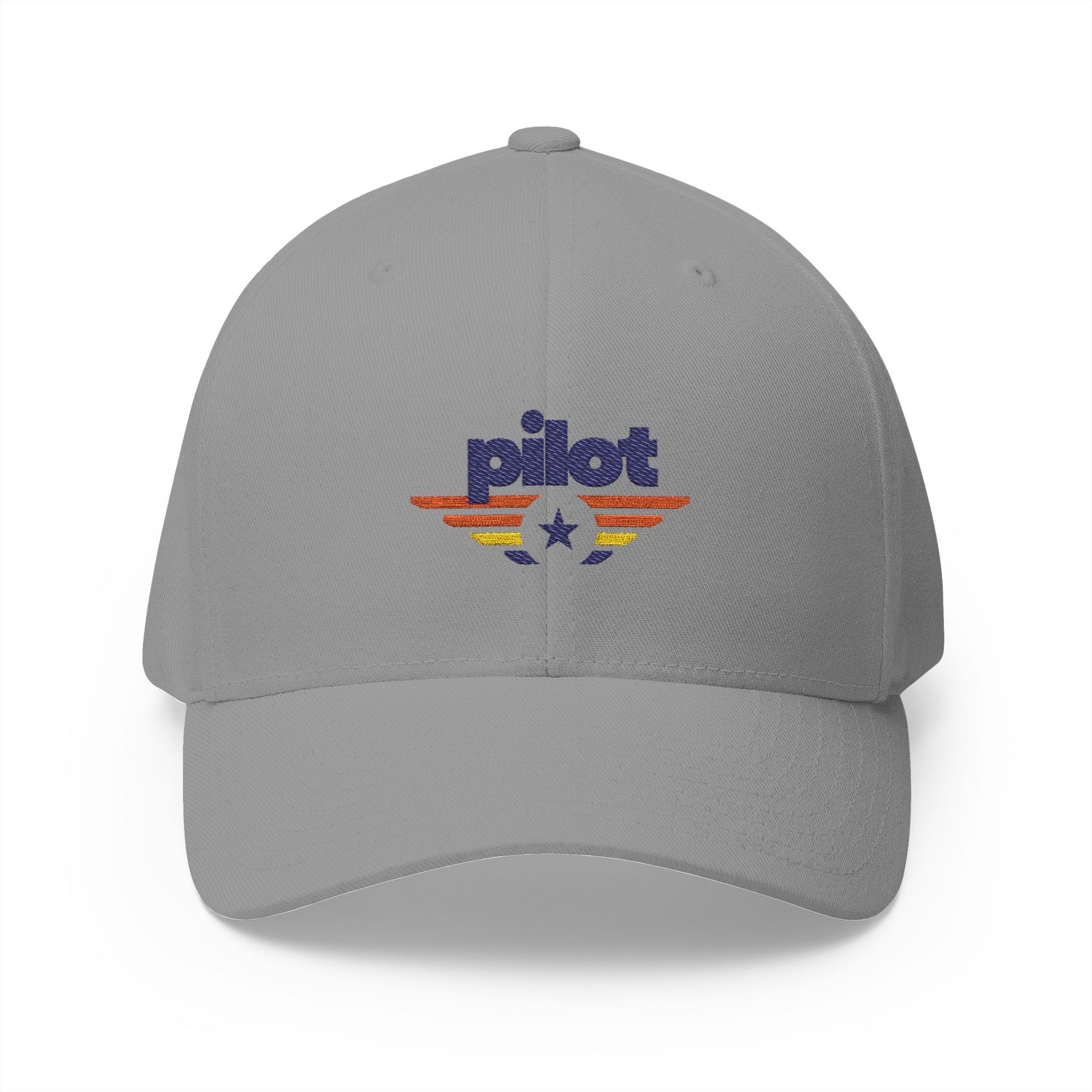 - Silver undervisor and embroidered back emblem for polished, aviation-inspired details
